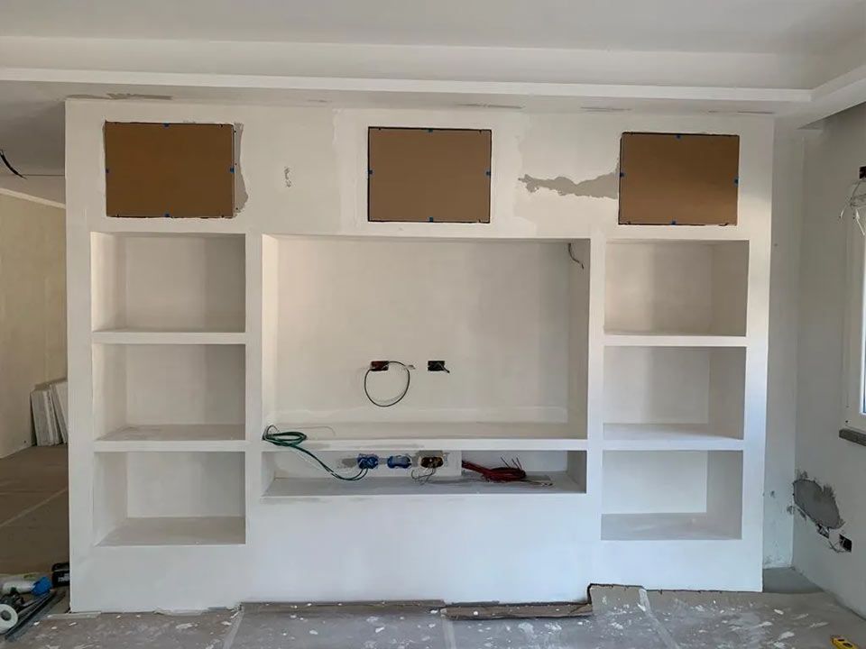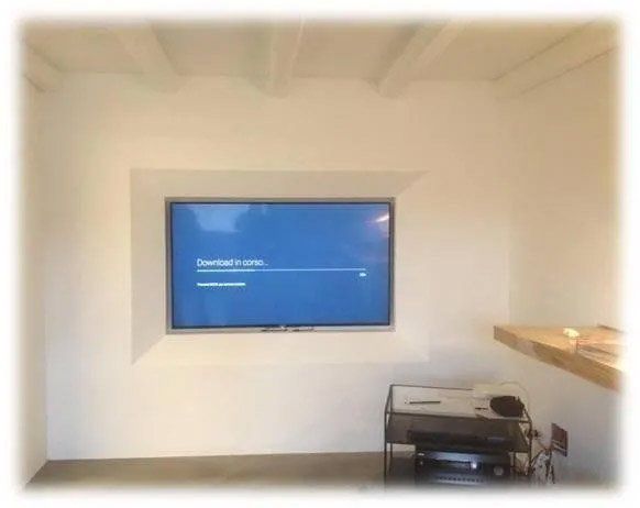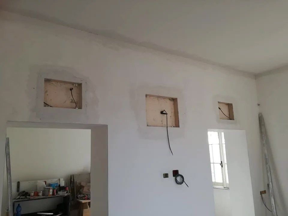 Наконец, мы забираем то, что оставили до чрезвычайной ситуации с Covid ..... на фото одна из систем, которую нужно доработать, чтобы получить еще один непревзойденный звук. Каналы LCR для полностью скрытой системы домашнего кинотеатра, этап установки и конечный результат. ПОЛНОСТЬЮ НЕВИДИМЫЙ