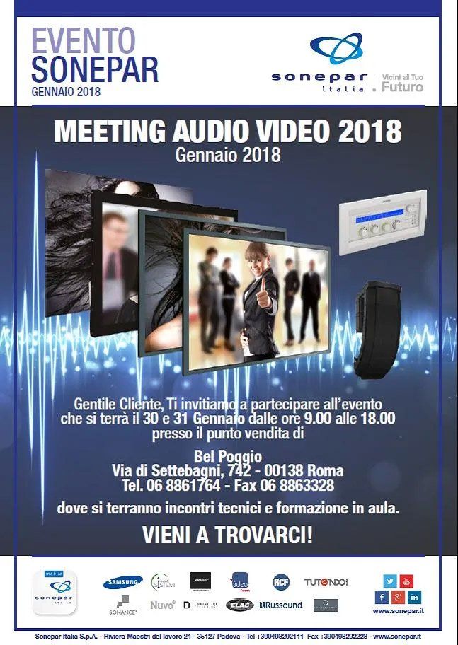 Elab рада сообщить, что она будет присутствовать со своими полностью скрытыми аудиосистемами на встрече, организованной SONEPAR ITALIA по энергосбережению.